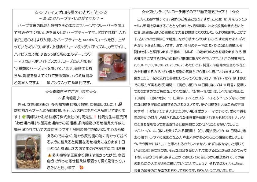 今月でシャルム新聞を卒業いたします。5年間ありがとうございました♡